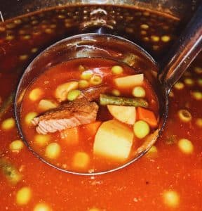 In an Instant Pot combine beef broth, tomato juice, vegetables and seasonings. Select soup mode and turn the steam valve to the sealing position. Let the soup cook on soup mode for the pre-programmed time. When the Instant Pot soup mode is complete, vent the steam valve and remove the lid. Serve soup with crackers, crusty bread or a grilled cheese sandwich.